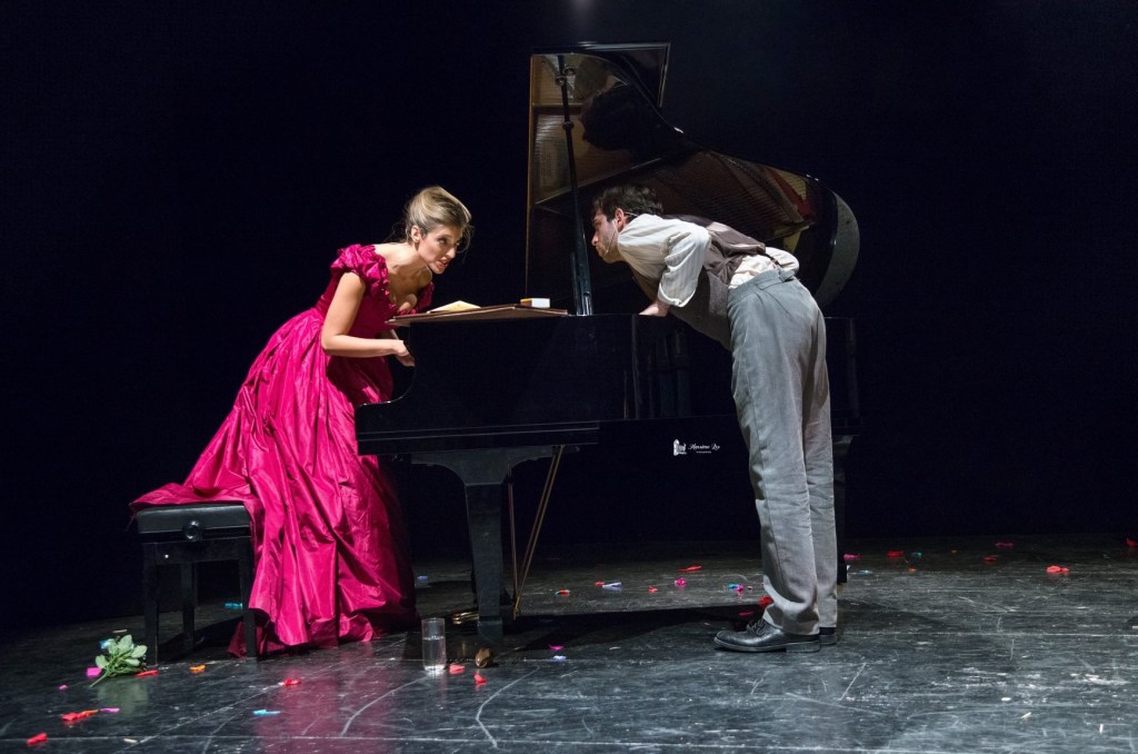 Sulla scena quasi buia, protagonista è un pianoforte. Arriva da lontano, una voce fuori scena. Ora è vicina: alle spalle del pubblico si affretta a salire sul palco l’impaziente ed anticonformista pianista Clara Schumann (l’intensa Guenda Goria). È accompagnata da un deliziosamente meravigliato giovane falegname del teatro (il ricco in grazia Lorenzo Manfridi).