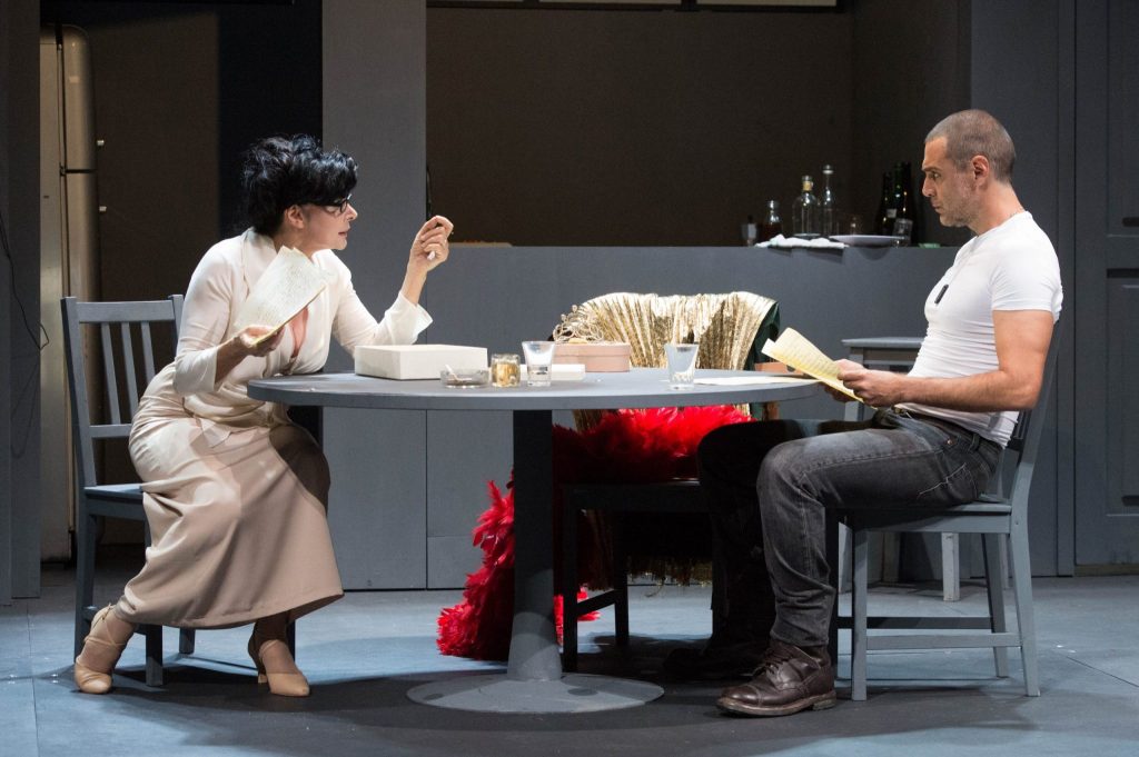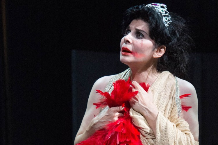Sta raggiungendo, qui, nel quartiere dei Campi Elisi, sua sorella Stella, che la ospiterà per un periodo. Non appena entra in scena, Blanche (una dannatamente divina Mariangela D’Abbraccio) ci si manifesta subito come una donna fuori posto, disorientata perché già dislocata altrove: “non mi reggo in piedi” è la sua prima battuta. Una donna dall’allure di Jackie Kennedy e amante delle camicette bianche, come l’Arcadina cechoviana, con la quale condivide anche un disperato bisogno di piacere agli altri. “Come sto?” chiede a tutti, mettendosi sotto i riflettori ma scegliendo lei sotto quale luce mostrarsi.