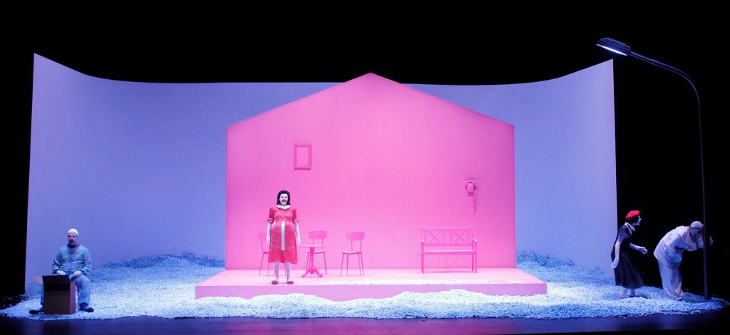In un ambiente scenico che sa di marshmallow, abita quel che resta di una famiglia, in bilico tra un’apatica malinconia e un’ossessiva eccitazione.
