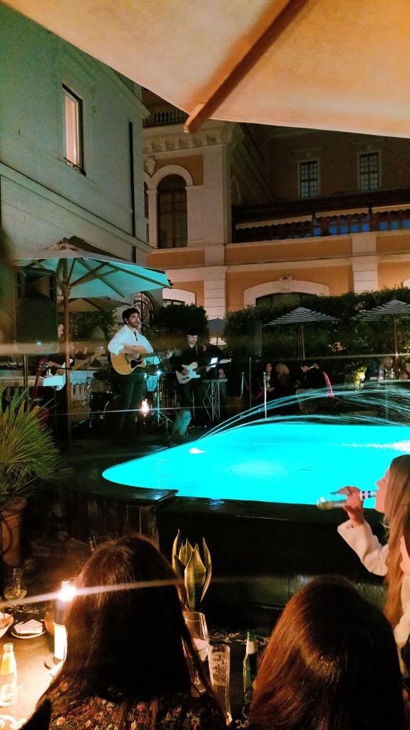 Ieri sera, il giardino bordo piscina dello spazio esterno del “Ristorante Pacifico” è stato abitato da una crescente e frizzante energia: quella che caratterizza certe attese. Quelle belle. Come un perfetto “padrone di casa”, Marco Rossetti ha avuto cura di accogliere e salutare i suoi ospiti. Complice, una timida pioggerellina che ha attirato l’attenzione, senza però alterare la tensione per l’inizio del live show.