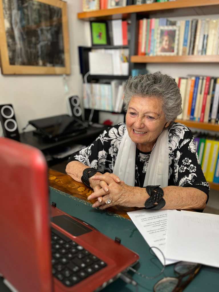 Nanda Anibaldi é una splendida donna elegantemente estrosa, raffinatissima e con un innegabile quid ieratico. Dopo la laurea in Lettere Moderne alla Sapienza di Roma, frequentando le lezioni di Natalino Sapegno e di Giuseppe Ungaretti, e la laurea in Filosofia a 67 anni, pensa oggi – entrata nella sua 87esima primavera – al desiderio di sempre: laurearsi in Medicina. Sará che l’Anibaldi é una donna inguaribilmente affamata di vita, di curiositá, d’eternitá.