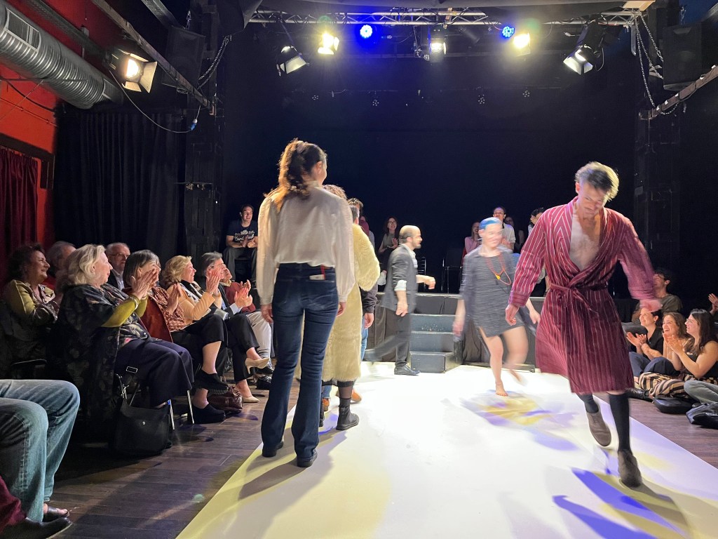 Efficacissima l’organizzazione dello spazio teatrale che vuole la scena immersa nel pubblico – e da esso circonda su tutti i lati – creando un’esperienza ancor più intima e coinvolgente. Seducente la scelta di abitare lo spazio attraverso una prossemica decisamente intrigante. Suggestiva la cura dei costumi di scena, che ben riesce a visualizzare il gioco sinergico degli opposti.