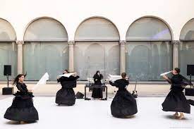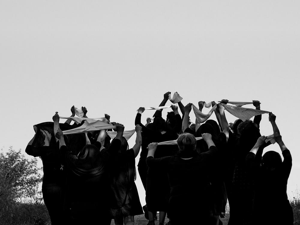 Ora il lamento-danza raggiunge lo stadio dell’estasi: la forma dei loro silenzi, unita a quella dei loro corpi, plasma le performer scolpendole come un gruppo plastico. E’ bellezza.