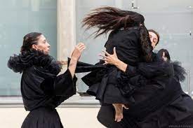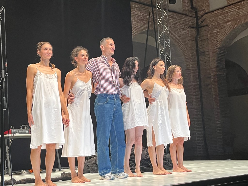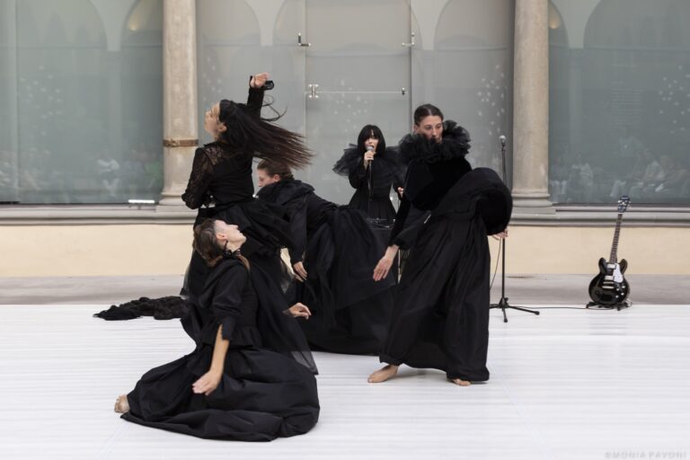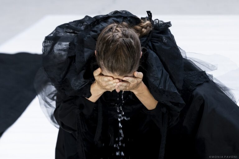Il pianto – a cui si abbandona una delle performer in scena – è una melodia dolcemente straziante ma anche dolorosamente sensuale. Che diviene una sorta di base musicale, capace di muovere in una danza le altre performer.