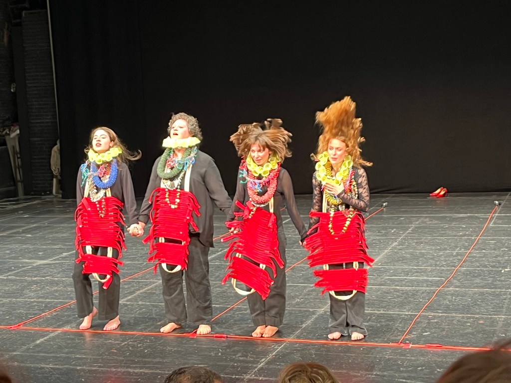 Rotta la barriera tra scena e pubblico per un’immersione totale dello spettatore nell’azione teatrale e la sua verità, le quattro interpreti entrano in mezzo al pubblico. E’ un’esperienza intima e collettiva: un gesto che rafforza il senso di comunità. L’interprete diventa il fulcro simbolico della rappresentazione, quasi un sacerdote che officia un rito.