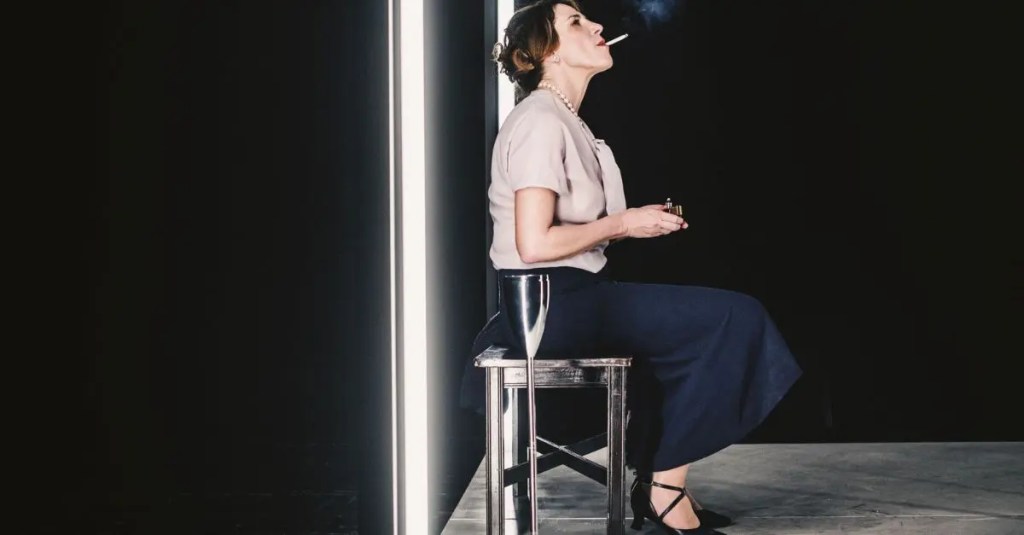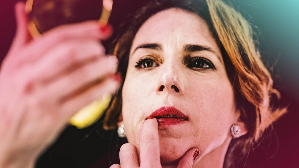Neanche il rituale di accedersi una sigaretta dietro l’altra l’aiuta davvero nella gestione emotiva. Imbarazzo che lei prova a celare con raffinata disinvoltura. Non le viene neppure in soccorso il rituale di ridipingersi continuamente le labbra di rosso: manifesto di sicurezza e glamour.