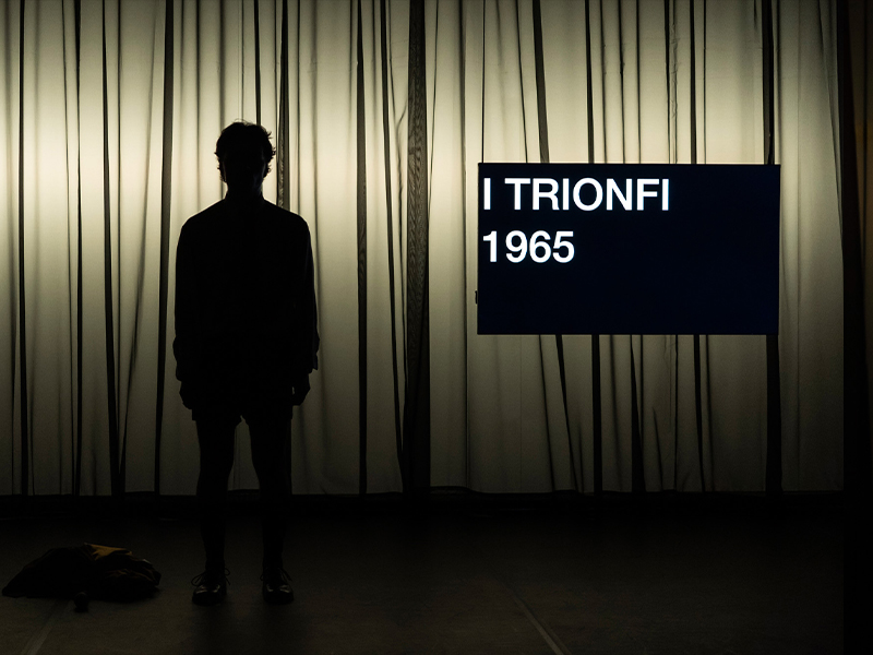 Ma non basta: la musicalità della parola-pittura-materia-topografia si travaserà anche nell’accoglienza “eterna” di quei modelli primordiali profondamente radicati nell’inconscio collettivo, che sono gli archetipi del mito. Ne nasceranno “I Trionfi”: un poema dedicato al Alain dove i versi fioriscono, si fanno frutto ed esplodono muorendo in tramonti spessi e colanti.