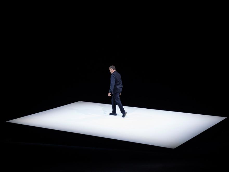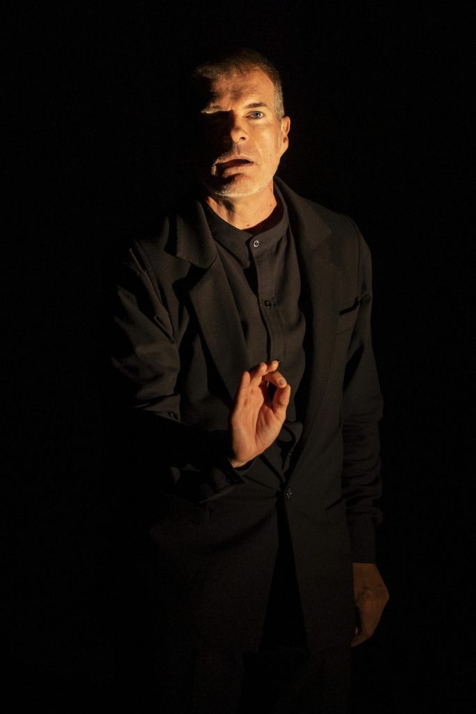 Massini ha una presenza scenica potentissima – coronata dalla sinergia tra la drammaturgia del disegno luci (la cura è di Manuel Frenda) e quella degli ambienti sonori (di Andrea Baggio) – attraverso la quale ci porta a sentire come Hitler abbia costruito il suo potere rimanendo sempre fedele al proprio desiderio.