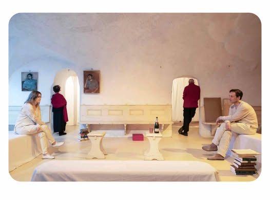 La regia della Porrino traduce, attraverso un sapiente uso del cromatismo e della prossemica, la visualizzazione di una narrazione profonda, immergendola in uno spazio scenico incantevolmente inquietante, come quello del Teatro di Documenti, mirabilmente progettato dal Maestro Luciano Damiani.