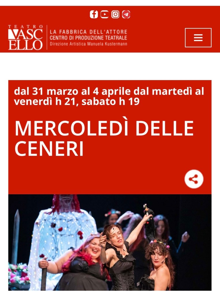 Intrecciando alla ritualità religiosa quella folkloristico-ancestrale del passaggio dal Martedì grasso al Mercoledì delle Ceneri, emerge dall’avvincente drammaturgia della Esposito la violenta ipocrisia secondo la quale tutto è lecito, potendo poi chiedere e ottenere perdono. E così, le ceneri che aprono alla quaresima, si mescolano alle ceneri della donna abusata, smembrata e bruciata. Ceneri, queste ultime, che non si riducono in soffice polvere: nelle ceneri della donna bruciata resta sempre qualcosa di irriducibile.