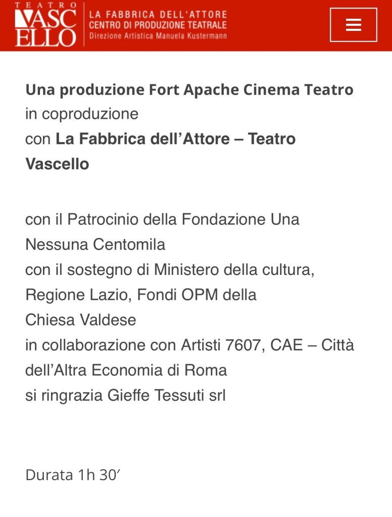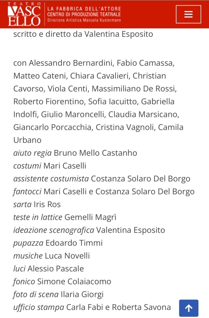 Magari portando sul palco temi sociali dolorosamente irrisolti: come quello che emerge da questo spettacolo e che è risultato fortemente sentito da parte di molte delle attrici della Compagnia Fort Apache Cinema Teatro. Cifra del teatro della Esposito è infatti quella di mettere il teatro a servizio degli interpreti, per attraversare e sciogliere quei nodi esistenziali che possono restare ancora serrati.