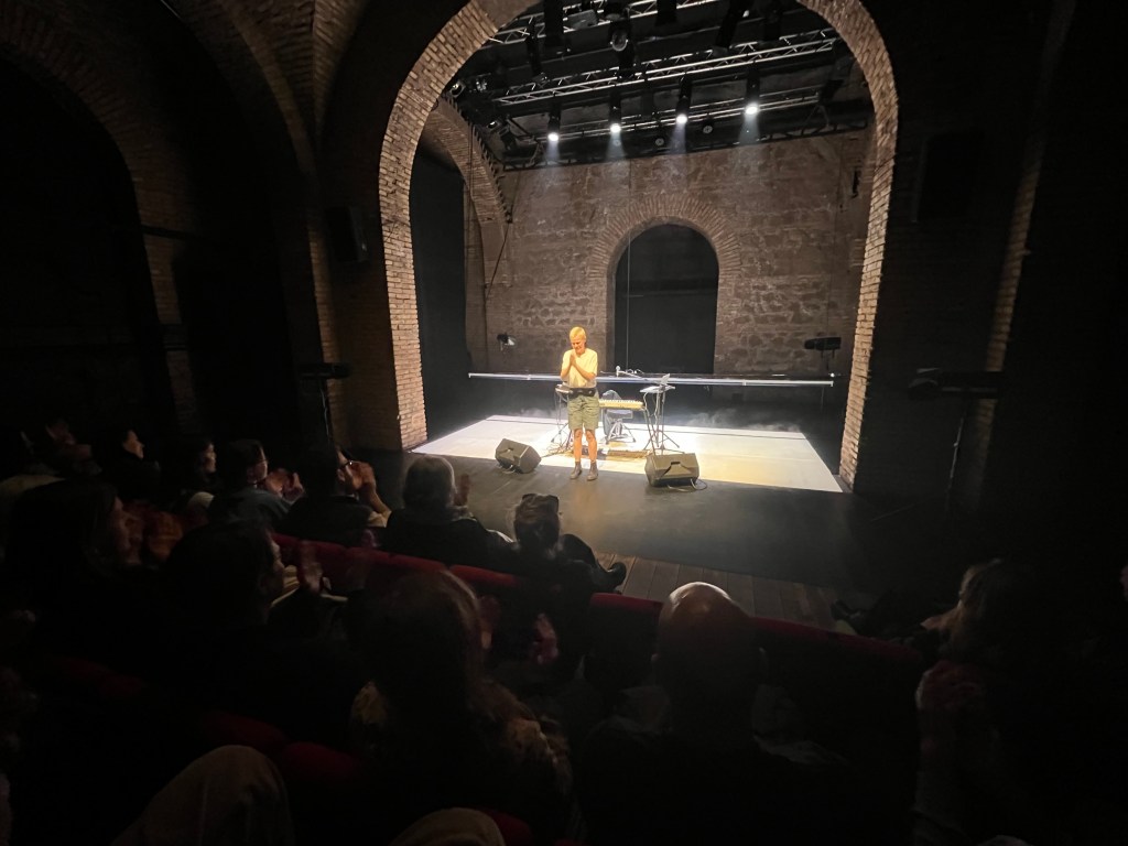 Qui in scena – attraverso lo stupefacente “corpo-cassa di risonanza” della performer Federica Rosellini – Ivan evoca la sua sconvolgente esperienza avvenuta in un frangente di disperazione. Un’esperienza la cui memoria riesce a risuonare intensamente nello spettatore, complice l’effetto delle vibrazioni restituite dall’amplificazione dei suoni e delle parole della Rosellini.