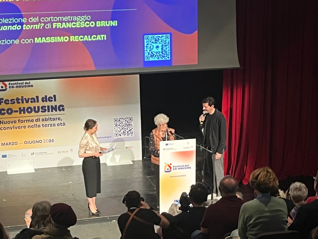 A seguire, dal palco del Teatro Vascello è stato proiettato il cortometraggio dedicato al Co-Housing del regista e sceneggiatore Francesco Bruni, dal titolo “Quando torni?”. Prodotto da Doc Servizi, con le attrici Elena Cotta e Luisa De Santis.