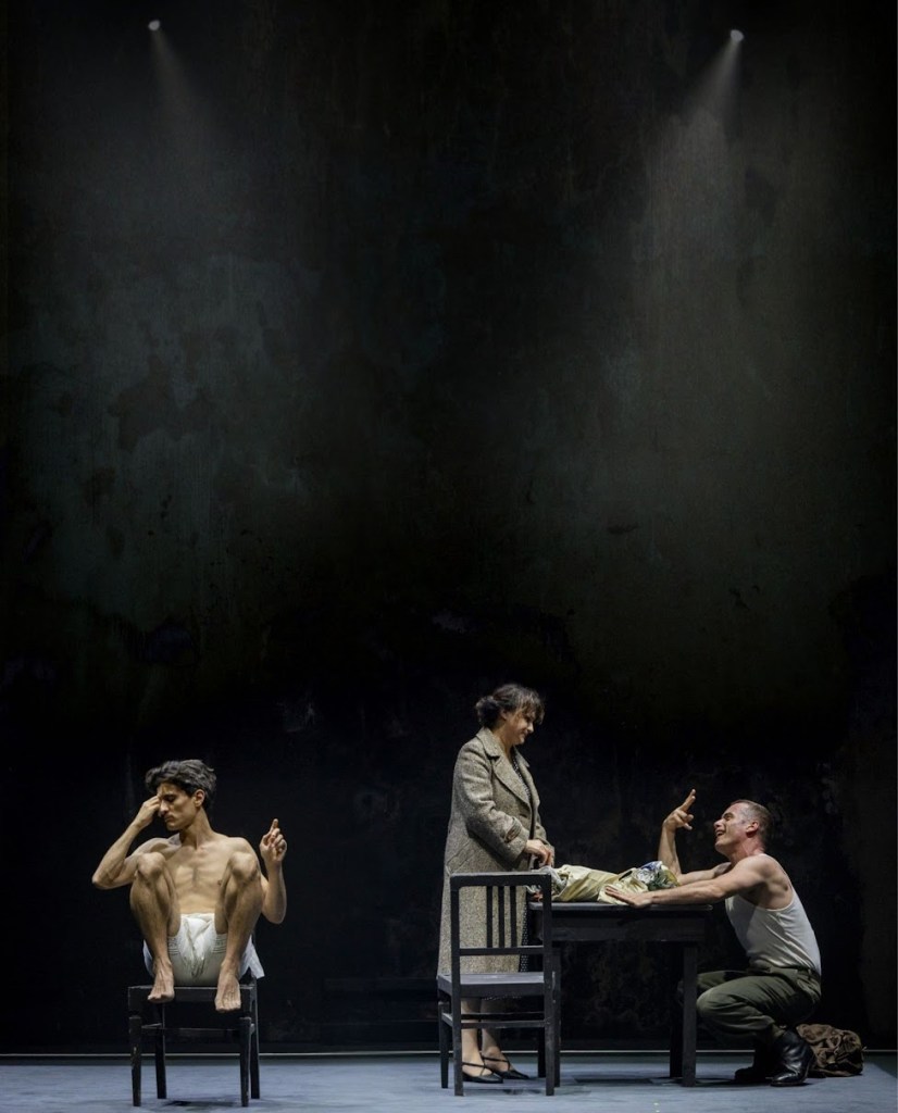 Tre soli interpreti — Franca Penone, Alberto Onofrietti e Francesco Sferrazza Papa — danno vita a una moltitudine di personaggi con intensità e precisione. Luci, suono e video costruiscono uno spazio evocativo in cui la macchina teatrale diventa metafora della grande Storia.