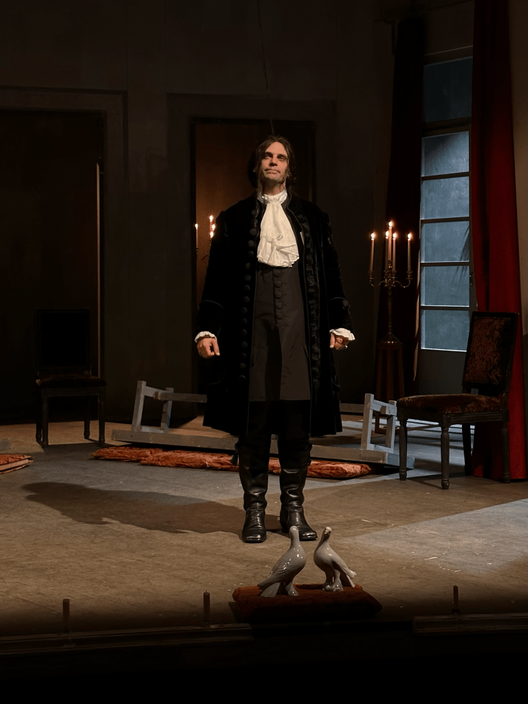 La scenografia sobria, i costumi curati nei dettagli e le luci raffinate contribuiscono a creare un mondo teatrale che è insieme realista e poetico, in cui la psicologia dei personaggi emerge con chiarezza e intensità.