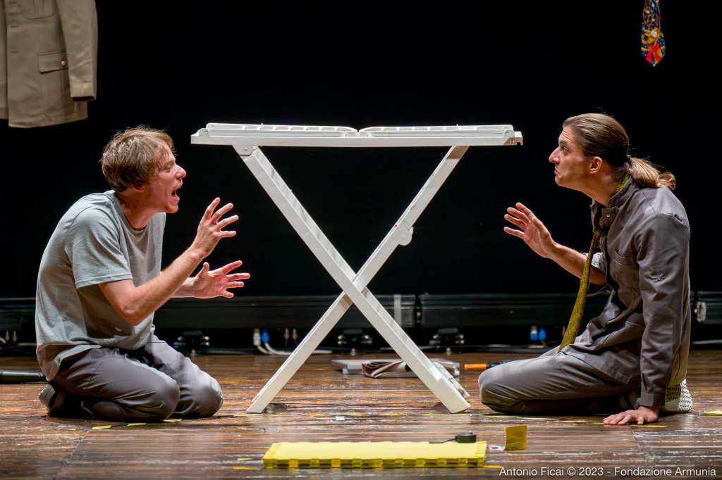 Niccolò Fettarappa e Lorenzo Guerrieri sono autori, attori e registi. Tra le realtà teatrali giovani più apprezzate sul panorama nazionale, i loro lavori vengono rappresentati e prodotti da importanti realtà teatrali. Attraverso un uso dinamico del corpo e un’atletica agitata della parola, portano in scena con drammaticità e graffiante ironia i temi più scomodi del contemporaneo dando voce sulla scena ai conflitti politici di una generazione oppressa e sfruttata, per riaccendere nel pubblico la rabbia rivoluzionaria.