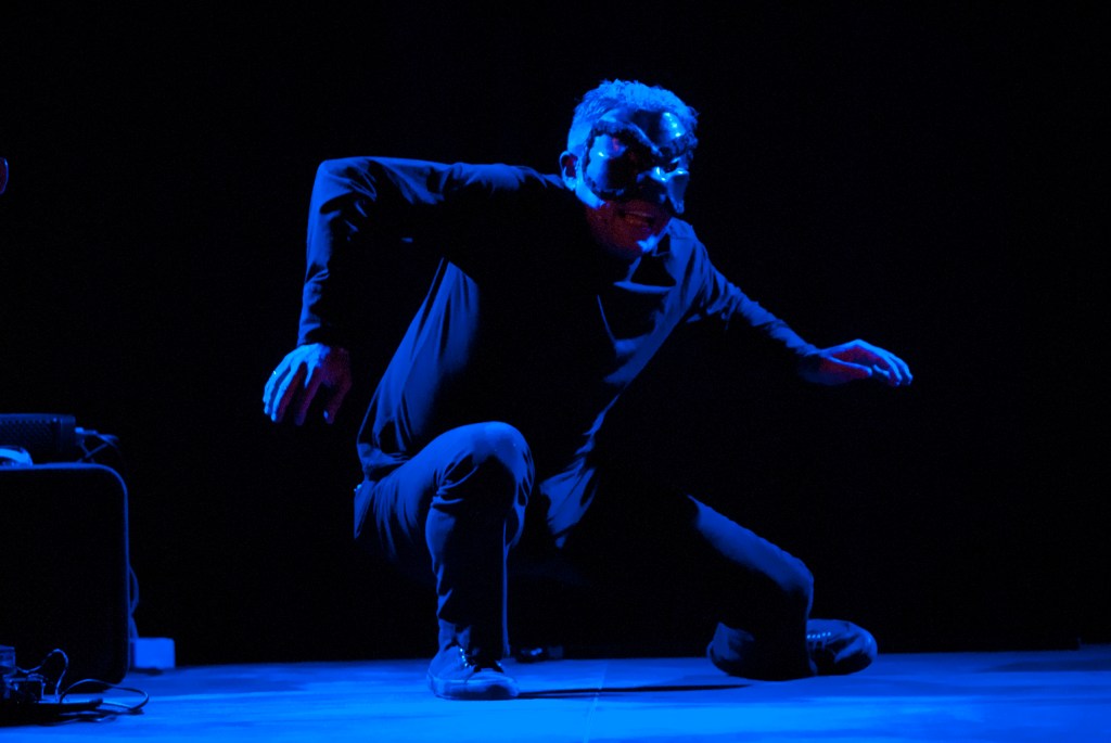 “Va in scena Napoli, con la sua levità, con la sua visceralità, il suo fuoco, il suo lirismo. Rosso e azzurro illuminano una catinella al centro della stanza, riempita dalla musica di basso e contrabbasso, a disegnare angosce metropolitane e veraci… una città che pulsa, che non si ferma, che sorride dei suoi dolori, che ha la capacità di reinventarsi, di togliere la maschera e di metterne una nuova…una Napoli di sogni e di visioni sempre un po’ cruenti, scuotenti, che Marco Sgrosso rievoca strisciando come un ragno nero mascherato, o con i movimenti che ricordano un Charlie Chaplin tutto partenopeo… Una città provata dalla guerra, come ricorda Sgrosso in uno dei passaggi più intensi dello spettacolo, una città riunita a tavola, riunita davanti al ragù. E a farla da protagonista una lingua che diventa urlo, invettiva, preghiera, detto… E si respira, grazie alla bravura di Sgrosso e dei musicisti che lo accompagnano in questo viaggio… il sapore di una terra… dove tutto rinasce e ricomincia…”.