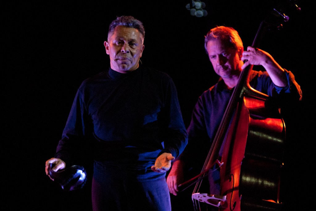 “Basso Napoletano” nasce da un antico desiderio di collaborazione, da un’amicizia collaudata e da una reciproca stima artistica tra me e Felice. Siamo partiti dall’idea di una jam-session tra contrabbasso e voce per costruire insieme un percorso tra le sonorità e le parole di una Napoli primitiva, malata, brutale, carnale e ricca di vitalità. Nel comporre l’elaborazione drammaturgica, ho attinto per frammenti, uniti da un filo umorale ed emotivo più che narrativo, ad opere che spaziano da Eduardo De Filippo a Raffaele Viviani, daTotò a Roberto De Simone, Ferdinando Russo, Angelo Manna fino ai toni più aspri e immaginifici di Enzo Moscato, strizzando l’occhio anche ai testi di alcune canzoni celebri reinterpretate liberamente nell’ottica di un concerto per voce e contrabbasso. Il nostro viaggio inizia dal sonno tormentato di una Napoli sotterranea e apocalittica e prosegue nelle spirali di un’allucinazione sospesa tra dramma e farsa, attraversando alcuni topos classici della drammaturgia e della cultura partenopea: il fuoco del vulcano, le sopraffazioni, la fame, le imprecazioni, la preghiera, il sogno che diventa incubo, le serenate romantiche, l’amore mercificato, il sonno indolente, dove trova voce e suono il lamento di una città dalla vitalità scatenata ma guastata dalla guerra, che aspira ad un sofferto risveglio della coscienza nell’armonia placata di una ‘pace senza morte.