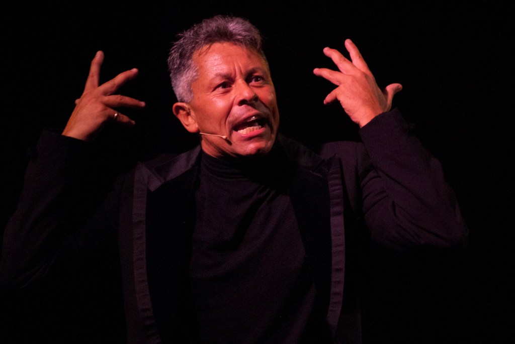 Un tragitto in compagnia di Eduardo, di Viviani e De Simone e dell’immenso Enzo Moscato, con due poesie anonime straordinarie per furore erotico, e accompagnato dalla musica di Felice Del Gaudio, in scena con Domenico Lo Parco. Non un commento, ma un’altra voce necessaria, che con le sue ascendenze jazz asciuga il linguaggio, gli impedisce il compiacimento e lo rende affilato e limpido.