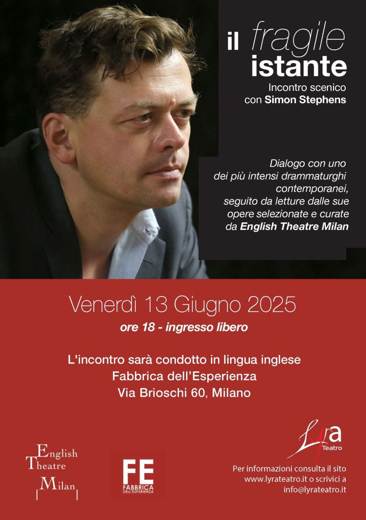 L’iniziativa si inserisce in un percorso ormai consolidato: Stephens ha già incontrato la comunità teatrale milanese in seminari di grande successo, e il suo adattamento teatrale del best seller Lo strano caso del cane ucciso a mezzanotte, in scena all’Elfo Puccini nel 2022 è stato lo spettacolo più visto nella storia della compagnia, con oltre 20.000 spettatori.