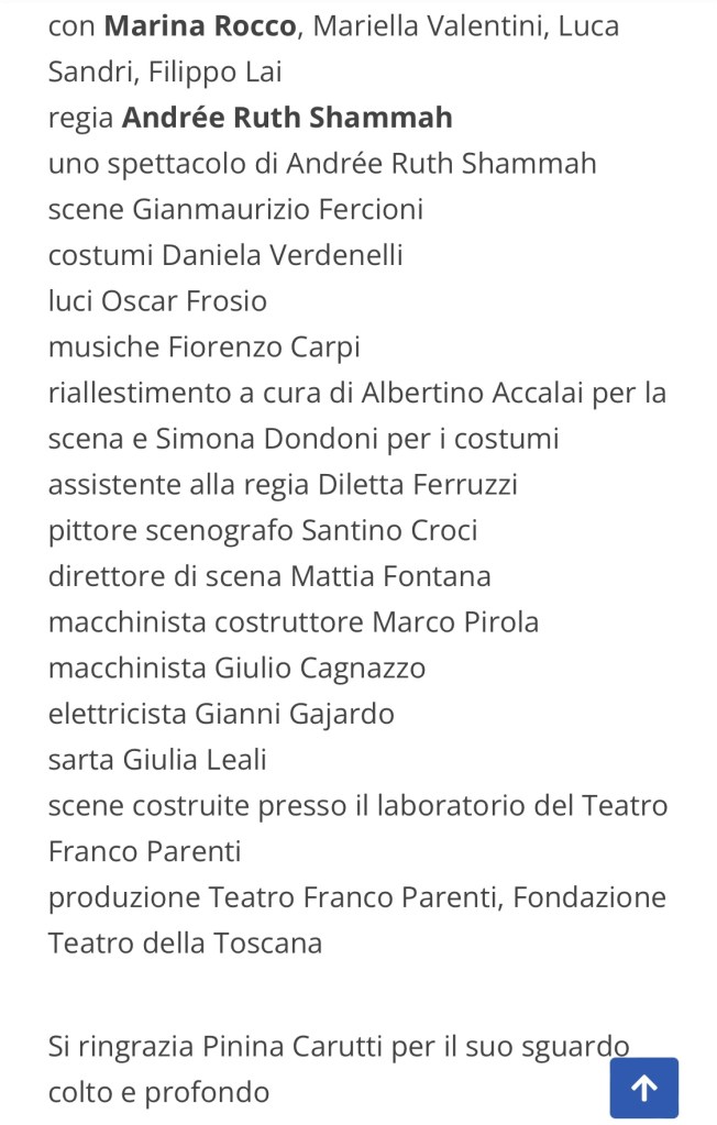 Un’esperienza di feconda condivisione, questa con la Capitale, voluta fortemente dal generoso umanesimo di cui Andrée Ruth Shammah sa farsi autrice e ambasciatrice. Un inno alla Vita, il suo, e quindi un inno al Teatro, che ha commosso, divertito ed entusiasmato il pubblico romano.