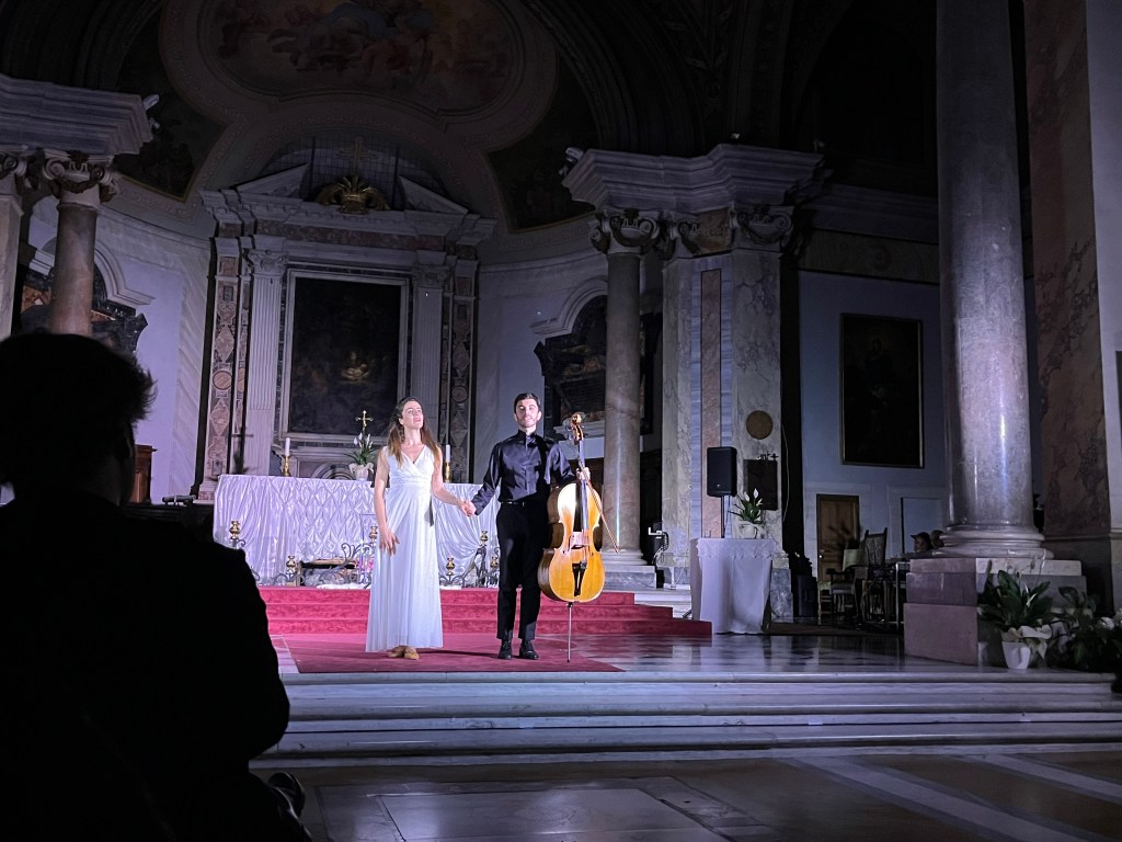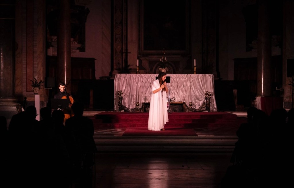 Non a caso lo spazio scenico, immerso nella luminosa oscurità di un luogo sacro, è abitato da una scala: simbolo del collegamento tra dimensioni diverse. Dove l’ascesa coincide con la discesa: perché il tempo che distrugge è il tempo che conserva (da “Quattro quartetti” di T.S. Eliot).
