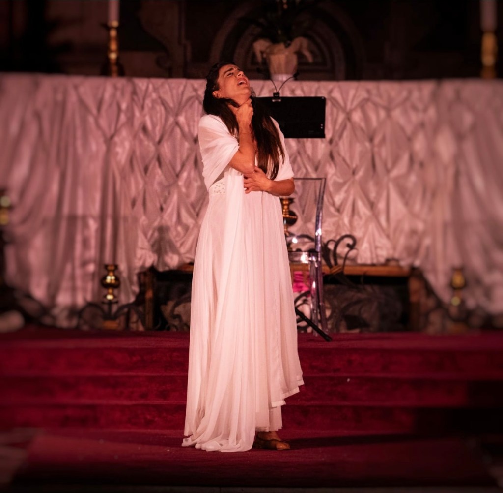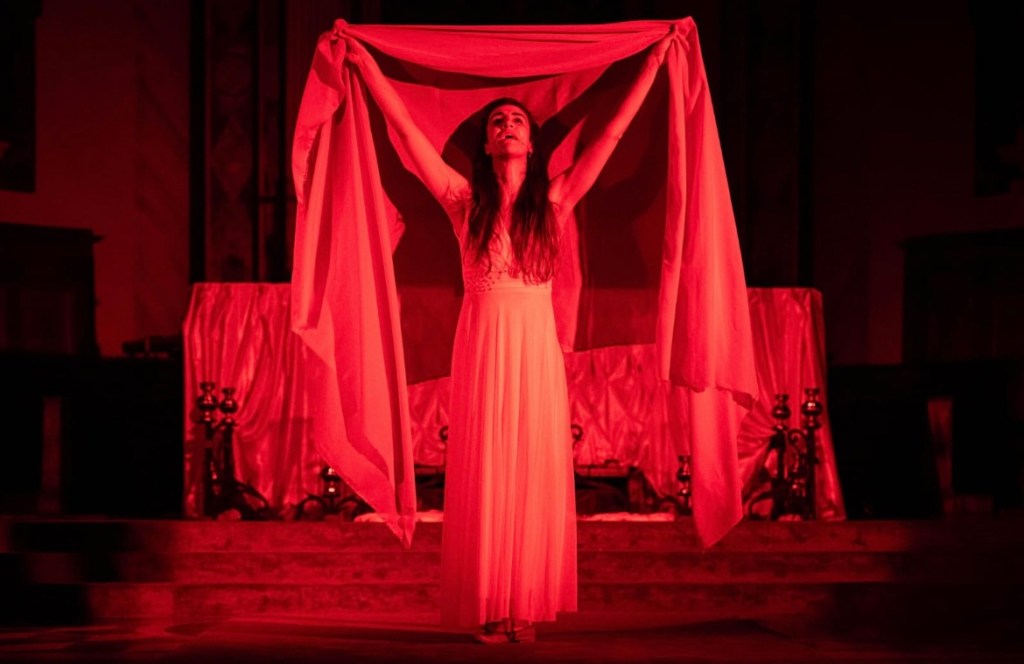 Una fluida dualità che continua a darsi nel contrappunto tra il sentire del Coro – qui rappresentato da una Irene Ciani dolorosamente sensuale, morbidamente tagliente, magneticamente arrendevole, che con i colori morfologici della sua voce restituisce i cicli della vita, della natura e dell’animo umano – e l’invocazione ossessiva della mancanza dell’Arcivescovo di Canterbury Thomas Becket da parte del Sacerdote (in scena un efficacissimo Matteo Santinelli).