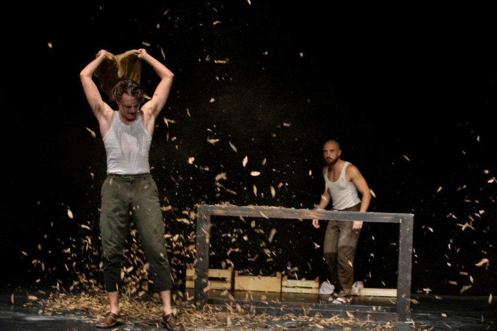 Damiano Spitaleri e Federico Bizzarri in una scena dello spettacolo “La difficilissima storia della vita di Ciccio Speranza ” al Teatro Belli di Roma