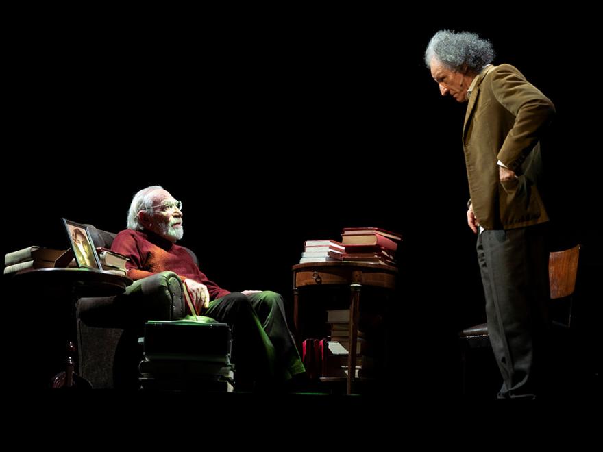 Una mirabile regia di Roberto Andò riesce a declinare efficacemente il movimento di questa dialogica danza esistenziale, proprio della sarabanda, anche attraverso una straordinaria costruzione dello spazio teatrale. E, nell’immaginarla, si avvale della complicità raffinatamente rigorosa di Gianni Carluccio, che ne cura le scene e il disegno luce.