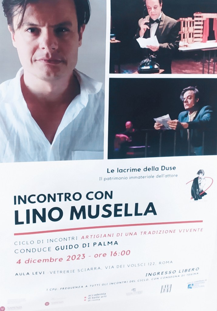 A testimonianza di come i fili della tradizione s’intessano preziosamente all’interno della trama dell’ habitus attoriale, ieri nell’Aula Levi delle ExVetrerie Sciarra si è avuta l’opportunità di ascoltare – grazie al ciclo di incontri “Artigiani di una tradizione vivente” organizzati da Sapienza Università di Roma – l’affascinante racconto che Lino Musella ha fatto della sua personale esperienza.