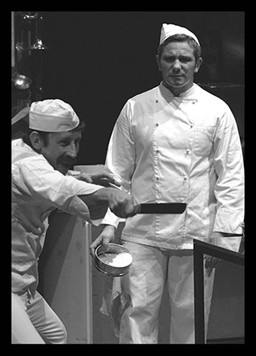 La scena riproduce un laboratorio di pasticceria, dove lavorano “dal vivo” due fratelli. Sono fratelli gemelli.