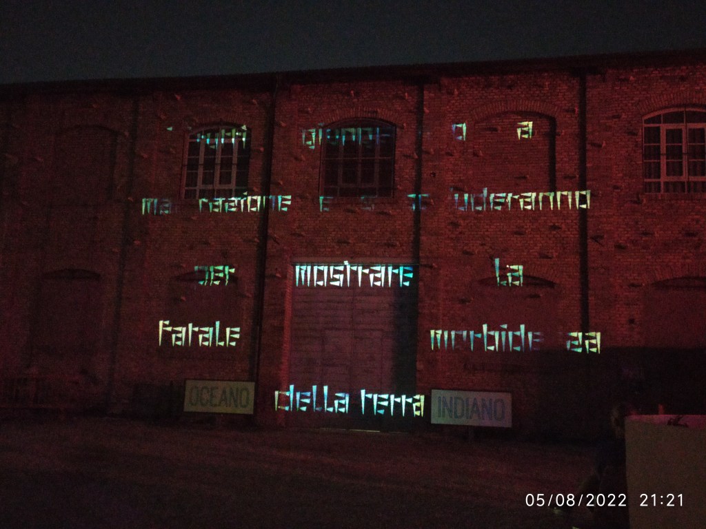 Così come efficacemente visualizzato dall’istallazione scenica in cui viene immerso il melologo della casadargilla. Al quale lo spettatore fa accesso dopo aver varcato la soglia fluidamente osmotica, resa dalla restituzione di habitat visivi distopici, proiettati su tracce di presente (gli accattivanti paesaggi visivi sono curati da Maddalena Parise).