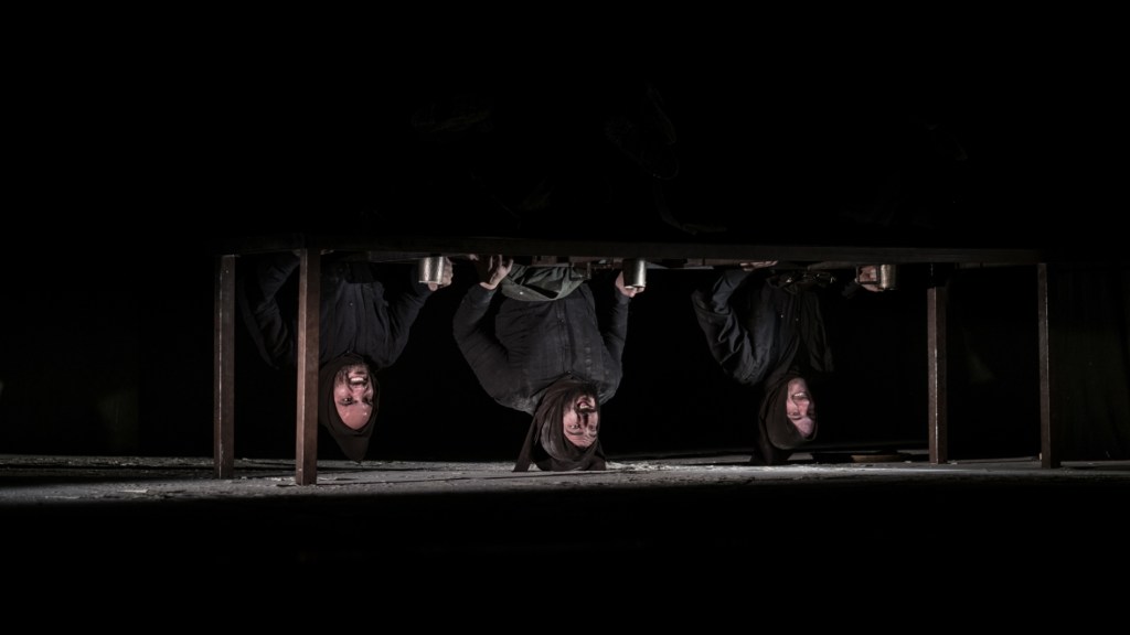 E ancora “Finale di partita” di Samuel Beckett. Due fenomenologie dell’aspettare: quella statica e da contatto di Hamm (Francesco Zaccaro), un’attesa cioè da immaginare, protetto dietro lenti colorate e a specchio e poi quella diversamente intrepida di Clov (Antonio Greco) . La sua è l’attesa che s’immagina dietro le lenti “altruistiche” di un piccolo cannocchiale e che tanto ricorda l’attesa della Compagnia della Contessa da parte di uno degli Scalognati de “I giganti della montagna” di Pirandello.