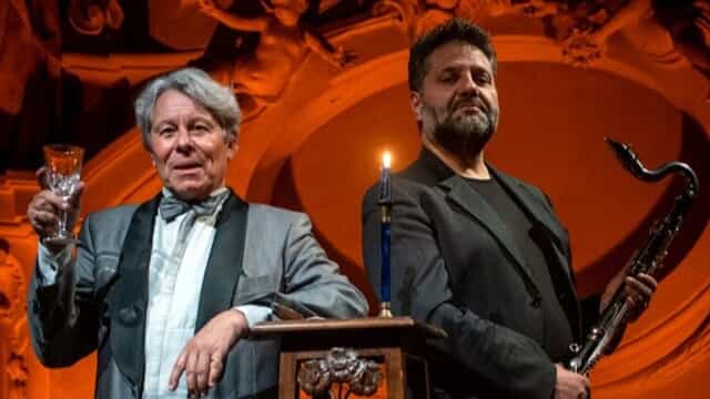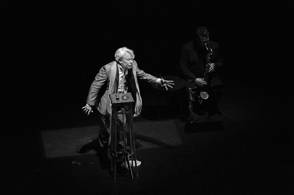 Questo testo avviluppante nel suo essere sferzante – e servito allo spettatore con irresistibile gustosità da Marco Sgrosso (attore, regista, pedagogo e co-fondatore assieme ad Elena Bucci della compagnia “Le belle bandiere”) e dal suo complice in musicalità Cristiano Arcelli (affermato sassofonista) – si apre e si chiude con un’innocente debolezza.