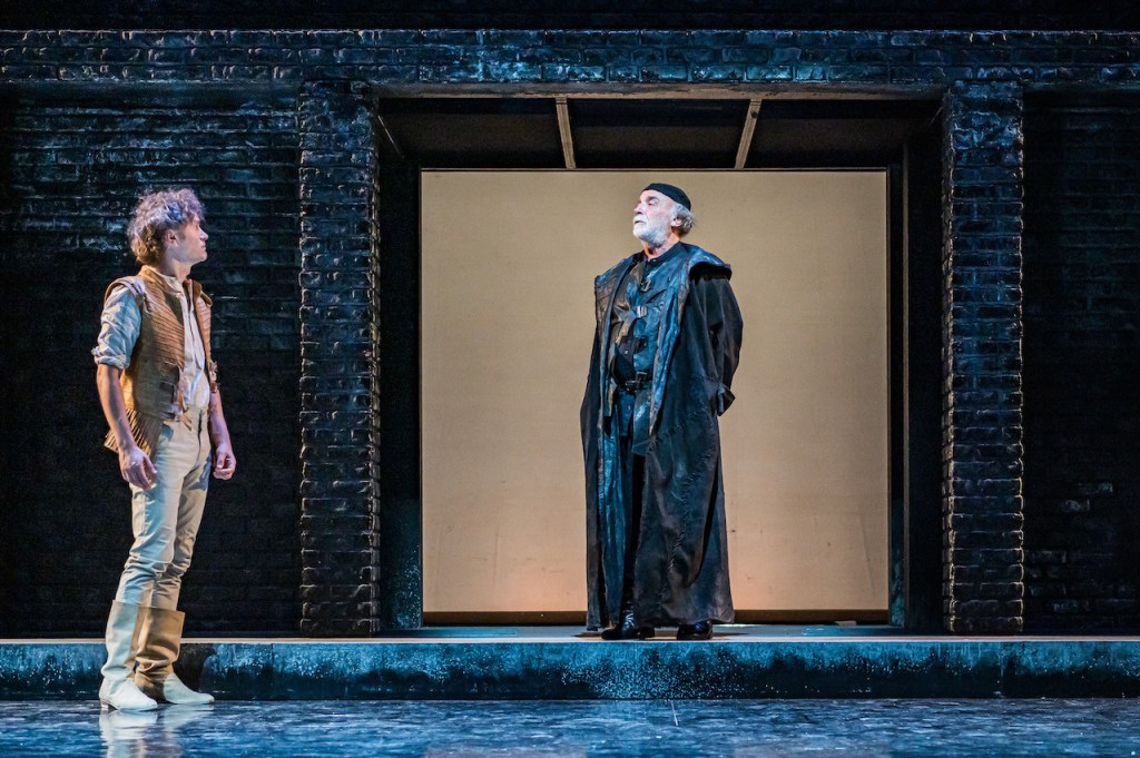Scenograficamente il sipario si apre su un’imponente struttura muraria: aperta ma insieme esclusiva (le scene sono di Marta Crisolini Malatesta). Dal 1516, infatti, la Serenissima decide di raccogliere tutti gli ebrei stabilitisi a Venezia in un’isola nella parrocchia di San Girolamo, a Cannaregio: luogo facilmente isolabile dal resto della città. E anche lo Shylock di Paolo Valerio esce da un luogo aperto ma separato dalla zona del proscenio, dove si muovono gli altri personaggi, veneziani.