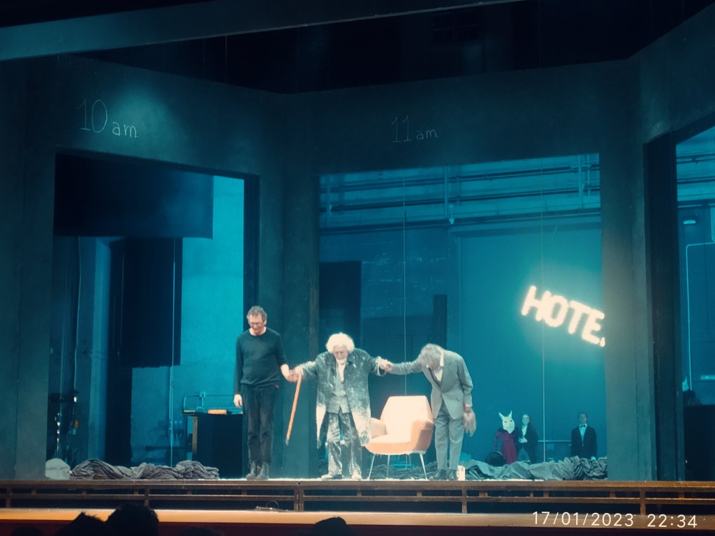 Suonando “all’interno Minetti””, lo spettatore viene apparentemente accolto nella apparentemente calda hall di un hotel. Dove, Minetti (un trascendentale Glauco Mauri), ormai attore vecchio e disincantato, arriva in un 31 dicembre. Da trent’anni viaggia per teatri con la sua inseparabile valigia, dove custodisce la maschera di Re Lear. Anche nella hall di questo hotel, Minetti si confronterà con due giovani donne che ricordano in qualche modo le due figlie di Re Lear.