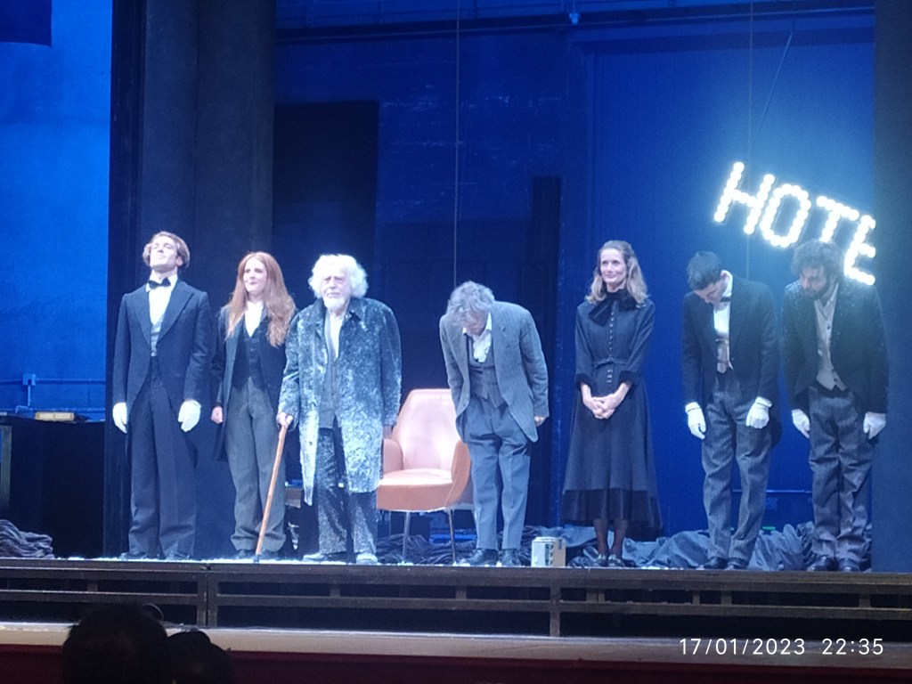 Ma in verità la hall è (anche) il foyer di un teatro dove Minetti attende di essere convocato, anche questa sera del 31, per andare in scena con il suo personaggio. Il direttore del teatro non arriverà ma l’occasione dell’attesa sarà colmata da un racconto ammaliato e ammaliante sull’arte dell’attore. Una sorta di insolita lectio magistralis, dove “l’interno” fisico lascia penetrare quello mentale in un gioco di scambi, dove i personaggi del teatro osmoticamente passano nel foyer/hall e gli ospiti dell’hotel penetrano sul palco. Perché questa è l’arte di vivere: un’arte mai disgiunta dalla paura. Dove si va sempre cauti nella direzione opposta alla meta.