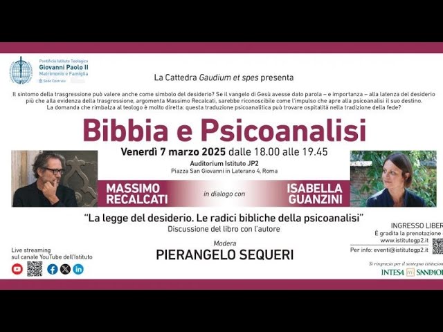 Occasione dello stimolante dialogo, moderato da Sequeri, con l’apprezzata filosofa e teologa Isabella Guanzini è stata la discussione sul recente lavoro editoriale di Recalcati “La legge del desiderio – Radici bibliche della psicoanalisi” (Einaudi, 2024).