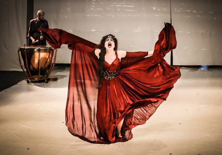 Lo spettacolo, che emana un forte senso di coralità, si articola per “quadri” che visualizzano quei momenti della tragedia di Euripide che più si caricano di pathos contraddittorio, dove cioè il desiderio di potenza e il terrore dell’impotenza convivono. Degli interpreti è impossibile non apprezzare la sacralità dei gesti, la precisione coreografica, la concentrazione e la presenza scenica.