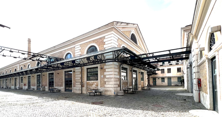 All’interno della cornice costituita dagli edifici del Mattatoio, dove il moderno stile industriale si mescola con le origini operaie del quartiere Testaccio, si inseriscono gli ampi spazi, di rara suggestione, de “La Pelanda”, originariamente destinati alla lavorazione dei suini.