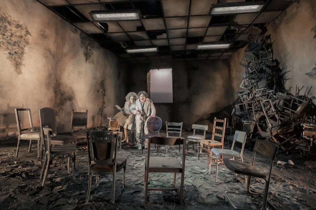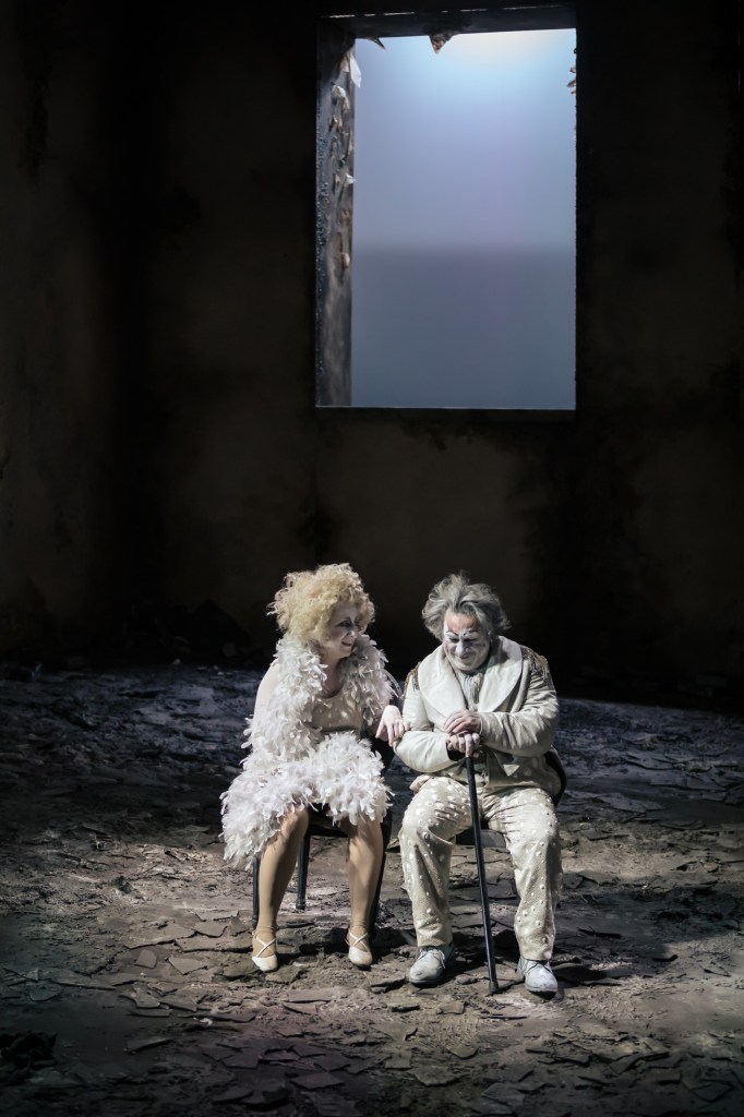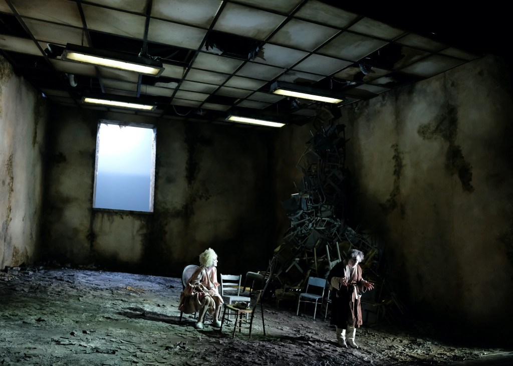 Nel riadattamento del testo (la cui traduzione è di Graziella Perin) Binasco “traduce il dondolio della lingua” in un andamento più piano, meno oscillante. Più “pop”. Dove la sensazione di produrre spiazzamento sensoriale nello spettatore viene affidata all’interpretazione degli attori: attraverso una resa della caduta dei principi della logica, in bilico tra il tragico e il comico. Ma lo spiazzamento maggiore è attribuibile, forse, a quella speciale “sacralità” restituita soprattutto attraverso gli occhi degli interpreti: in un dondolio tra ingenuità e perdizione.