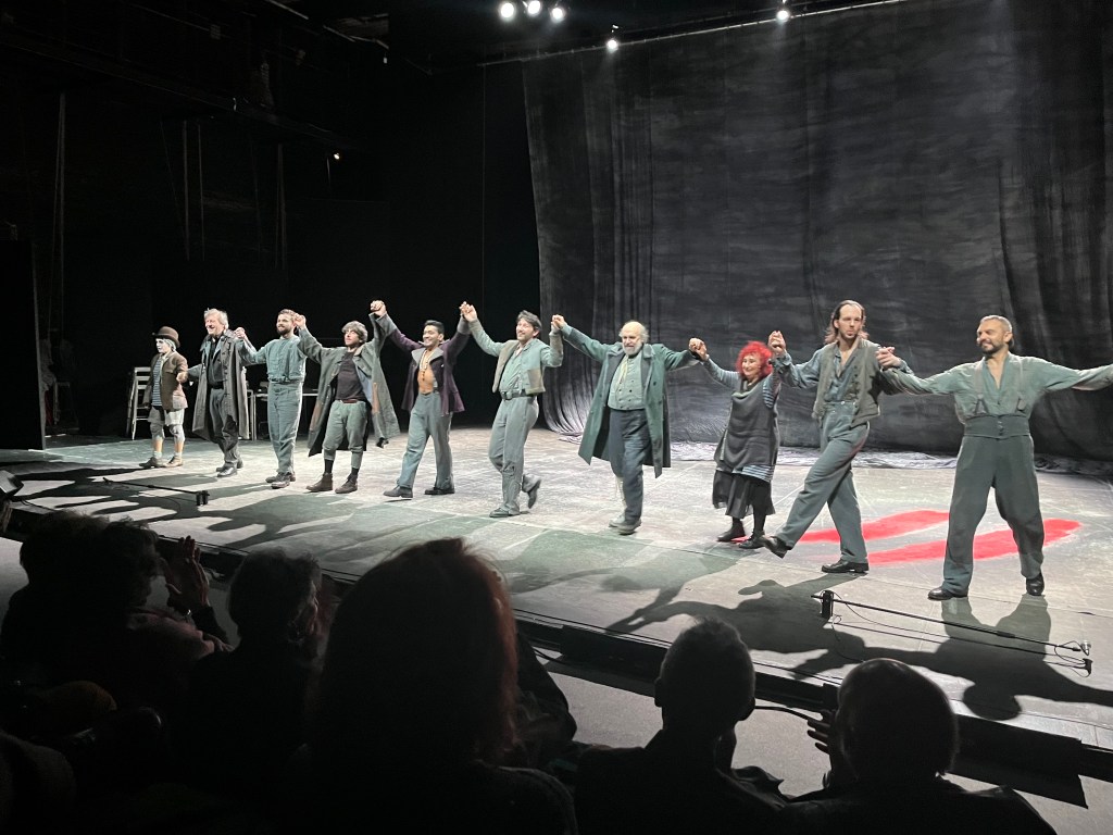 Dall’intrigante bellezza rock sono poi “i ponti” gettati dall’affascinante stare in scena (e al mondo) della direttrice di scena/narratore Cristina (Crippa), storica fondatrice del Teatro Elfo Puccini. La sua capacità di “legare” nasce dal seguire “la prova” stando un passo indietro: seduta al suo tavolino rosso, inscritto in uno spazio dalla “sacralità” circolare. Lei autentica custode dello spettacolo, oltre che della cambusa.