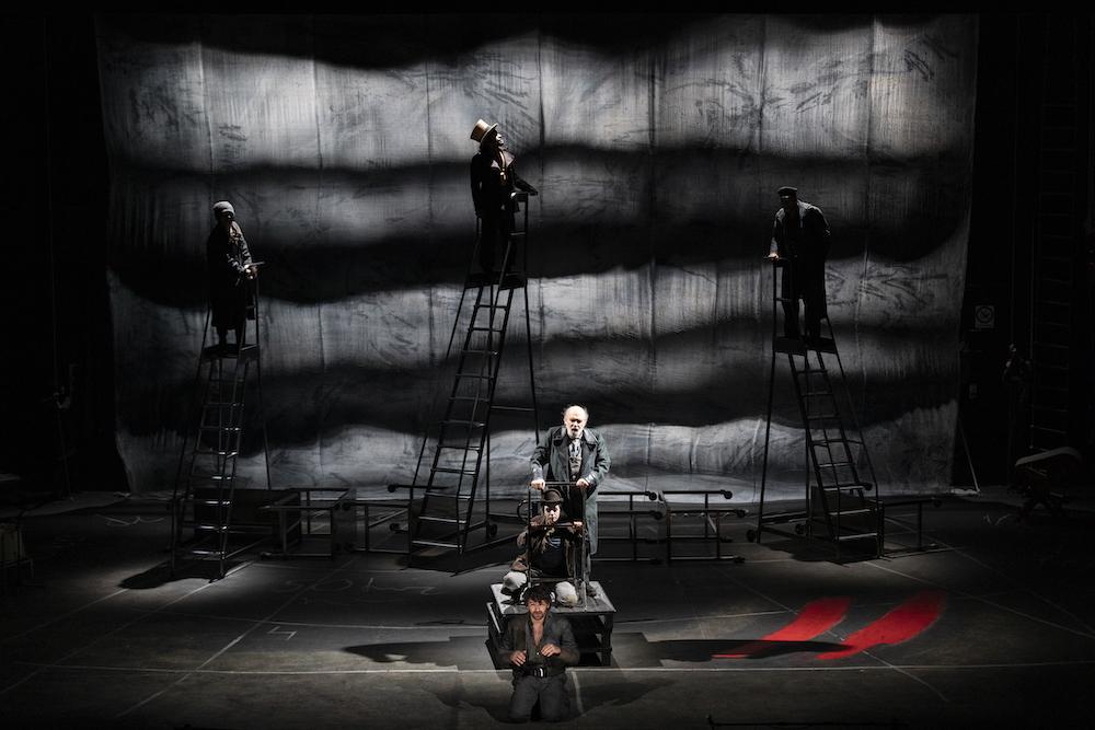 Come esemplificato, ad esempio, da quel fulgente avanzare del capocomico De Capitani che, come coltello, separa le due file di tavoli e rende incandescente la sensazione dell’urgenza di dare vita a una biforcazione del cammino fino ad allora avviato dalla compagnia. Separando (in realtà solo apparentemente) le prove in corso del “Re Lear” di Shakespeare, per passare ad una nuova (e complementare) prova: quella del “Moby Dick alla prova”, appunto.