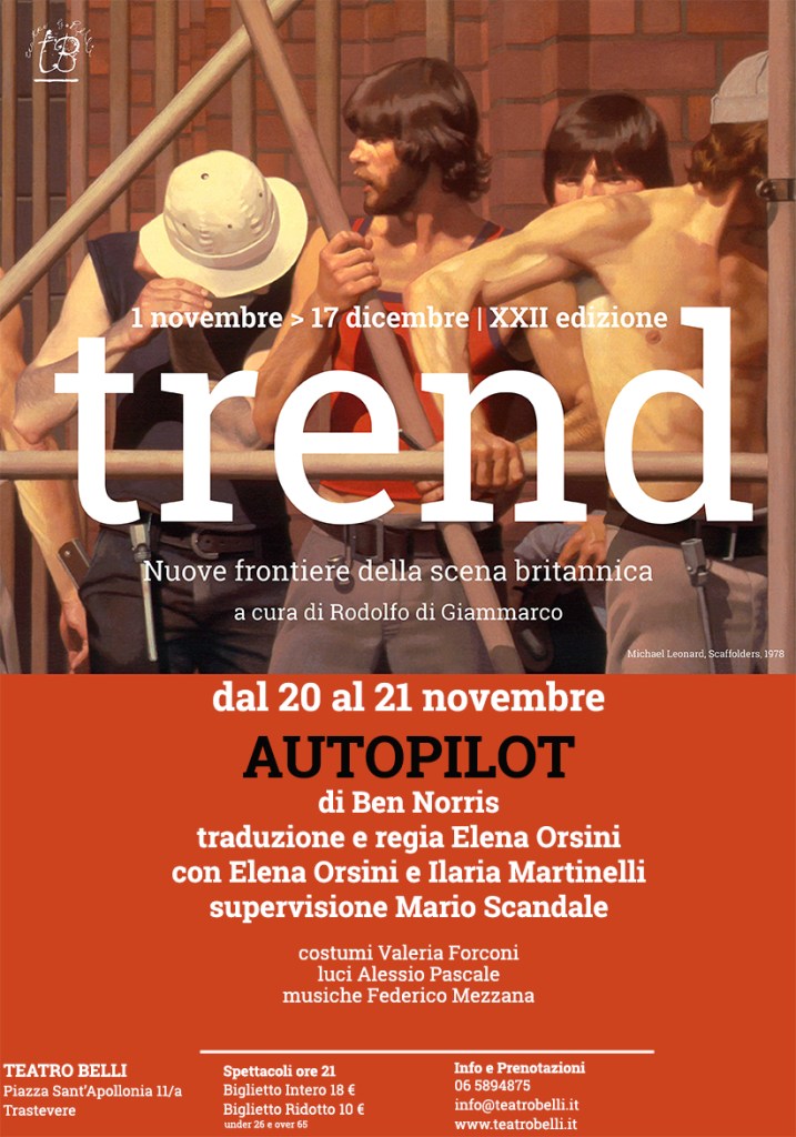 Un’occasione davvero stimolante – questo spettacolo Autopilot curato da Elena Orsini e supervisionato da Mario Scandale – per condividere temi così prepotentemente presenti nelle nostre vite con lo storytelling ironico e poetico, attento ma anche foriero di nuove torsioni esistenziali, come quello d’Oltremanica.