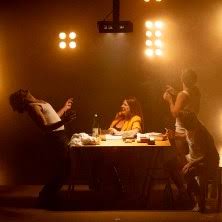Alle sonorità del fiume di parole con il quale così efficacemente tutti in scena rendono il flusso di coscienza tipicamente tondelliano, la Lanera sceglie di associare il controluce fumoso di una luminosità magnificamente intima. Metafora di una volontà di comunicare qualcosa, che altrimenti resterebbe celato. La drammaturgia delle luci è curata da Martin Palma.