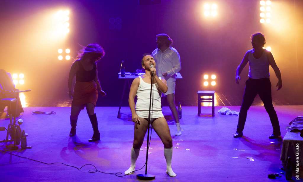 Lo spazio scenico sa mantenersi in felice bilico tra reale e surreale: dove ciò che è, riesce ad alludere anche a ciò che non è. Uno spazio che restituisce – e a qualche livello lega, accogliendola – la frammentarietà del sentire di questa generazione emiliana di fine anni ‘70, che della gioventù fa uno status: un modo di stare al mondo. Come veicolato assai efficacemente anche dal brano “Sono un ribelle mamma ” (suonato dai Sunday Beens), che allude a tutta l’ambiguità di questa loro forma di ribellione. La cura del sound design è di Francesco Curci.