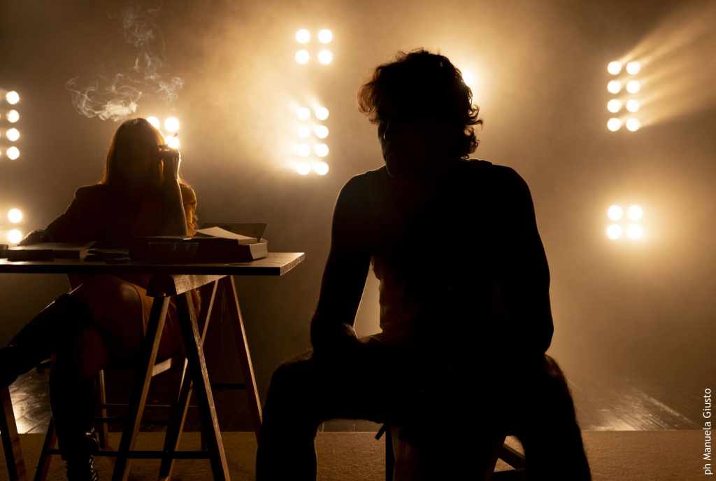 Splendido il lavoro sul corpo di entrambi gli interpreti in scena: corpi così fermi eppure così potentemente e in diversa maniera comunicativi. Nello specifico: tanto il se’ giovane interpretato da Gabriele Graham Gasco rompe continuamente i piani dello spazio in torsioni, muovendosi seducentemente tra la tensione comunicativa dello “spingersi verso l’altro” e il separarsene per imbarazzo, o per ritirarsi in una propria bolla immaginativa; quanto il sé adulto di Alessandro Mor risulta efficacissimo nella sua quasi totale assenza di azione fisica.