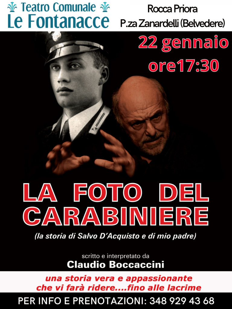 Ieri, il ricco cartellone dell’attuale stagione teatrale prevedeva la rappresentazione de “La foto del Carabiniere” di e con Claudio Boccaccini. Nonostante il pomeriggio dal clima decisamente pungente, il teatro si è totalmente riempito non solo di presenze ma anche di quella fervente energia che caratterizza l’impaziente attesa di una messa in scena.