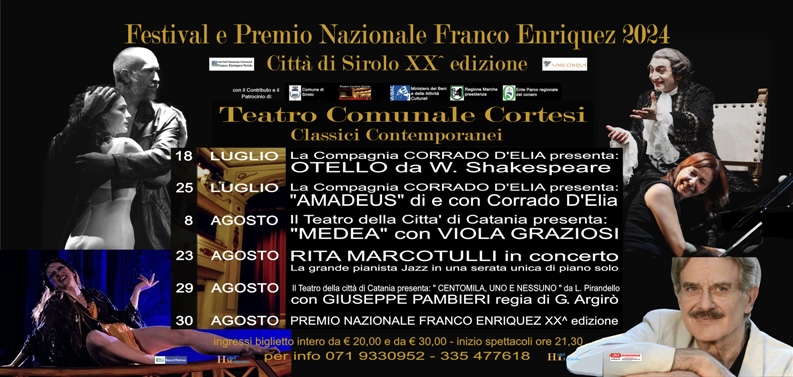 Una serata, tra le varie e stimolanti in cartellone anche quest’anno, di cui essere grati al Maestro Paolo Larici, per vocazione Presidente e Direttore artistico del Centro Studi Franco Enriquez. Suo il desiderio di testimoniare e consegnare ai giovani la fertile eredità del grande regista Franco Enriquez, che elesse Sirolo – insieme all’adorata Valeria Moriconi – quale luogo di ispirazione creativa e buen retiro.