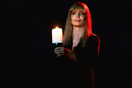 Ora a tutela – anzi, a guardia – dell’Elena regina di Sparta di Ghiannis Ritsos c’è una presenza ambigua (una Monica Santoro solennemente inquietante) : di quelle che sanno muoversi tra la vita e la morte, tra le ombre e la luce (come la drammaturgia luminosa di Andrea Iacopino narra con suggestione).